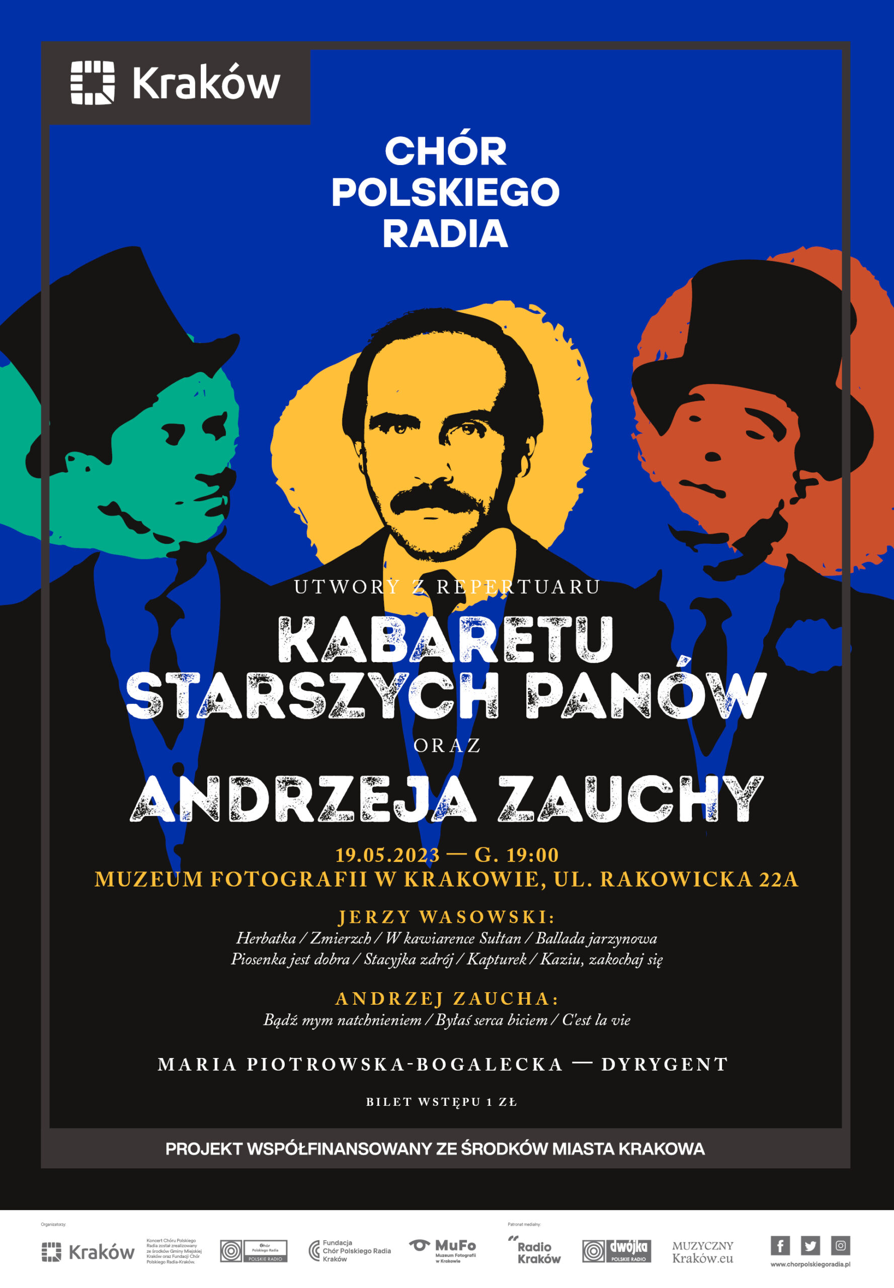 Zapraszamy Państwa na koncert Chóru Polskiego Radia w Krakowie pod dyrekcją Marii Piotrowskiej-Bogaleckiej, podczas którego zostaną wykonane utwory z repertuaru Kabaretu Starszych Panów oraz Andrzeja Zauchy.