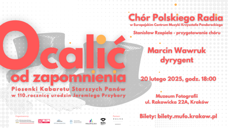 W tym roku obchodzimy 110. rocznicę urodzin znakomitego poety, pisarza, satyryka i aktora, uznawanego za „Ojca” piosenki poetyckiej, należącego do grona najwybitniejszych twórców powojennej sztuki estradowej, współzałożyciela Kabaretu Starszych Panów – Jeremiego Przybory. 20 lutego 2025 zapraszamy na koncert, który wypełni w całości Jego twórczość, tak dobrze znana przez zdecydowaną większość Polaków. Dzięki wspaniałym, błyskotliwym aranżacjom a cappella Andrzeja Borzyma i Marcina Wawruka piosenki te dostają drugie życie i wciąż zachwycają humorem, piękną polszczyzną i wykwintnym stylem. Kolejne pokolenia odczytują je i interpretują na nowo, poznają meandry polszczyzny najwyższych lotów, sztukę odniesień, skojarzeń, mistrzowsko dopracowanych onomatopej. Błyskotliwe opracowania, które zaprezentuje Chór Polskiego Radia – Lusławice pod dyrekcją Maestro Marcina Wawruka dostarczą Słuchaczom niewątpliwej przyjemności zarówno pod względem muzycznym jak i słownym. Serdecznie zapraszamy do MuFo w Krakowie!